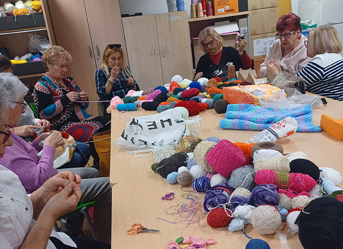 Las mujeres mayores de la asociación Tejiendo Solidaridad de Alcorcón colaboran con Wanawake tejiendo flores de crochet. Estas se incorporaron a varias sesiones del taller prelaboral que Wanawake realiza cada semana con mujeres supervivientes de la trata con fines de explotación, acogidas por la Fundación Solidaridad Amaranta. Las mayores les enseñaron sus primeras nociones de crochet y juntas terminaron las flores tejidas en un producto original y a mano (pendientes).