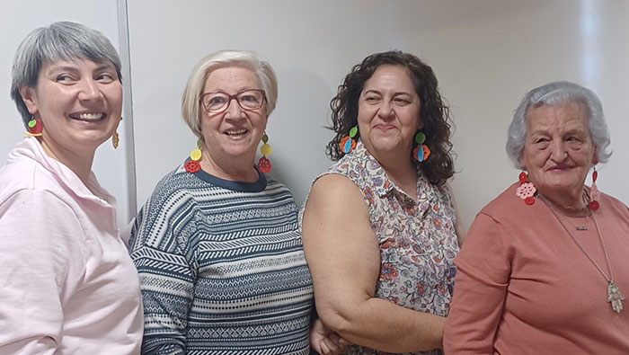 Las mujeres mayores de la asociación Tejiendo Solidaridad de Alcorcón colaboran con Wanawake tejiendo flores de crochet. Estas se incorporaron a varias sesiones del taller prelaboral que Wanawake realiza cada semana con mujeres supervivientes de la trata con fines de explotación, acogidas por la Fundación Solidaridad Amaranta. Las mayores les enseñaron sus primeras nociones de crochet y juntas terminaron las flores tejidas en un producto original y a mano (pendientes).